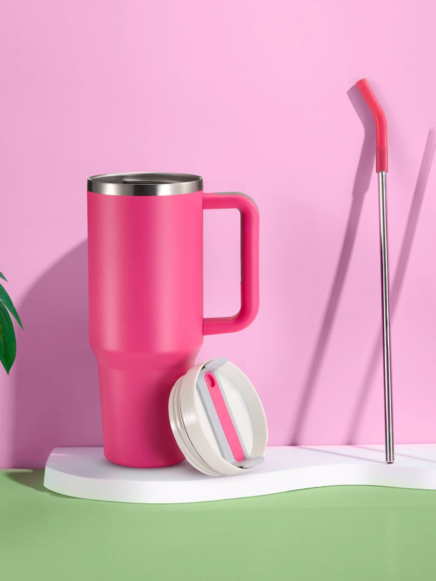 Kook Stainless Steel Tumbler, with Straw and Handle, 40 oz