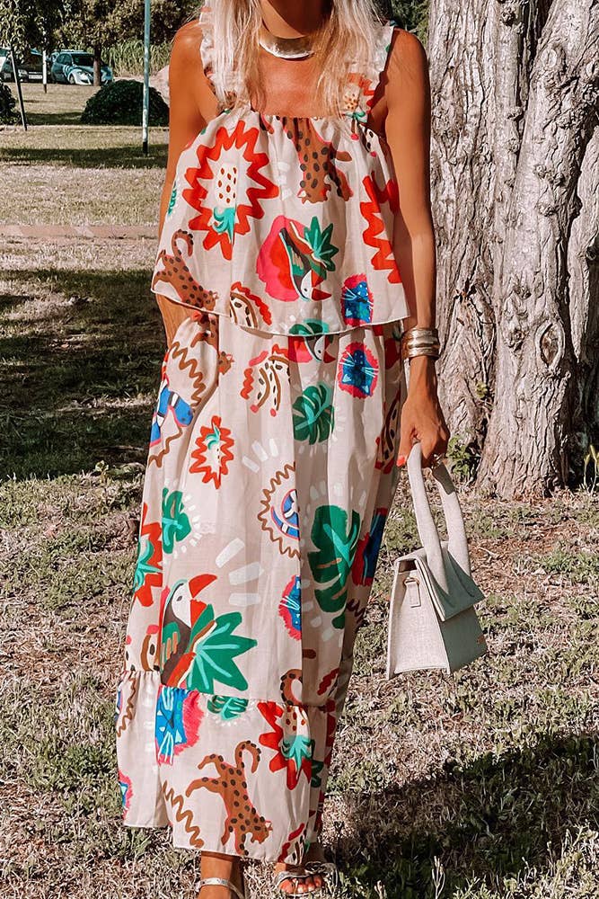 Boho Fake Two Piece Floral Maxi Cami Dress CY062