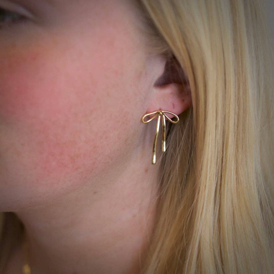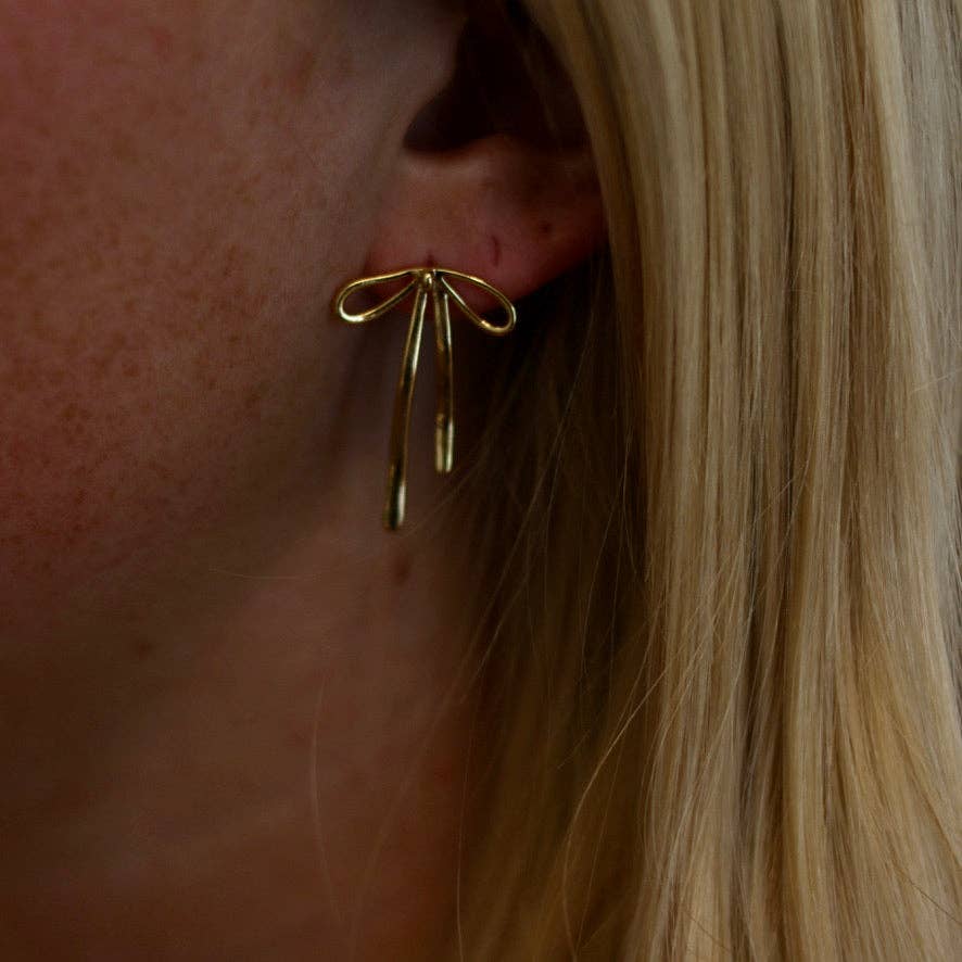 Iconic bow earrings! We love, love, love, this amazing quality 14k gold plated post earring! You will love them too!